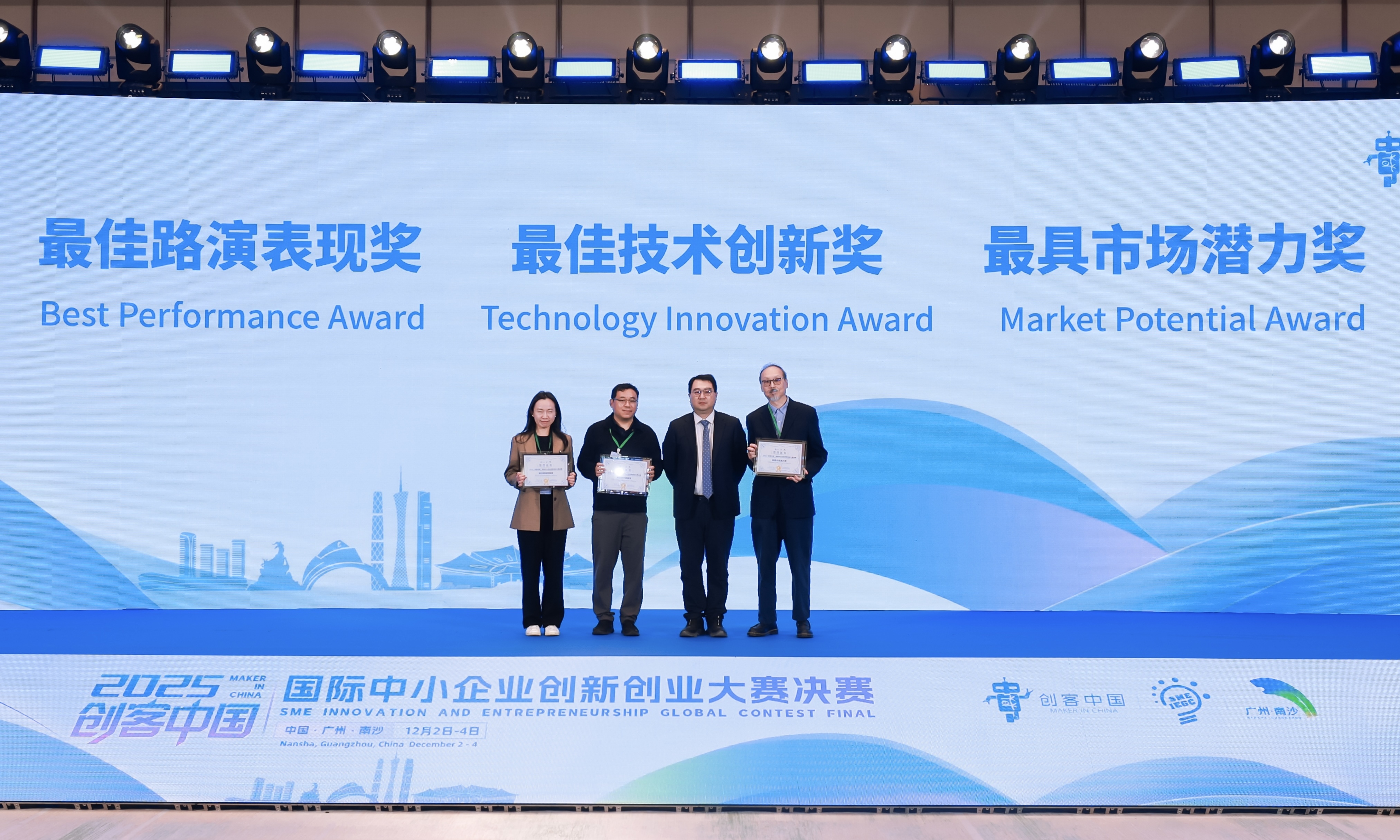 作为国家级双创标杆赛事,本届大赛连续第三年将决赛落地南沙,以创新为纽带,续写大湾区与全球双创力量的合作新篇章。大赛聚焦前沿科技赛道,吸引了众多优质项目同台竞技,展现出中小企业在突破关键技术、培育新质生产力中的重要作用。